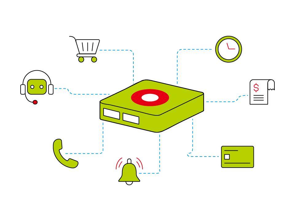Deployed on a powerful mini-computer (6x6x2 inches) size. No need to have a monitor. Almost invisible in the environment. It connects to invoice printer, kitchen printer, package printers and other onsite devices.