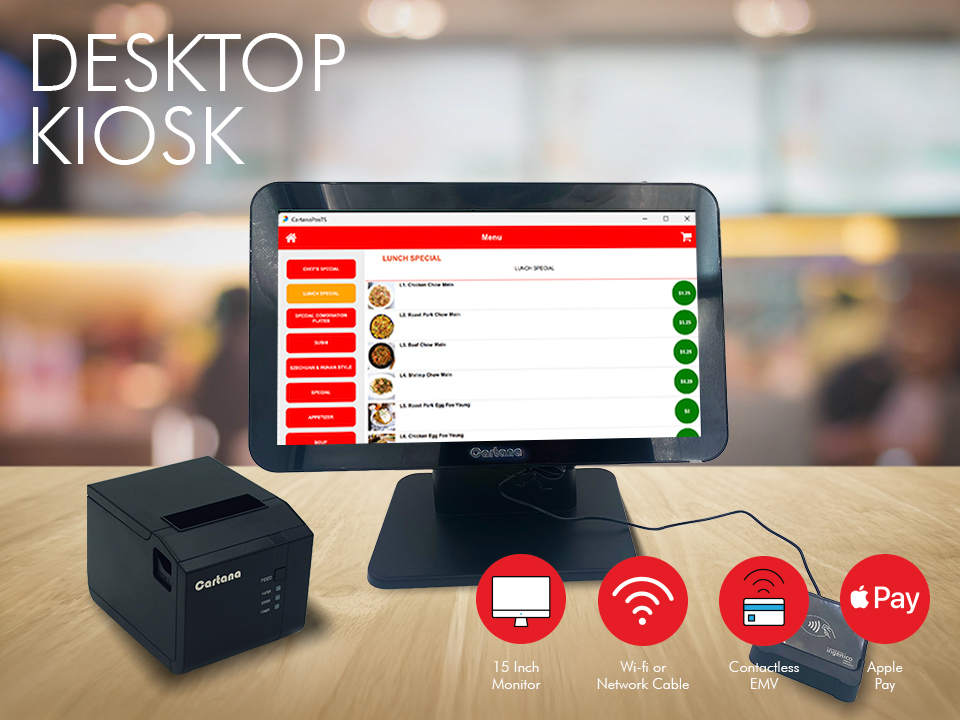 - Cartana Desktop Kiosk can be configured as a dual-purpose POS, both for managing online orders and as a self-service kiosk
