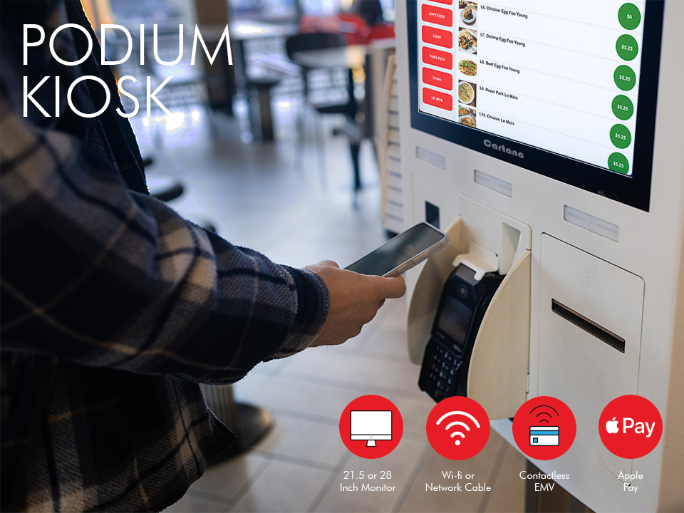 Cartana's Desktop Kiosk offers a compact, cost-effective solution that's ideal for quick-service restaurants looking to streamline front-end operations. Its small footprint makes it easy to deploy in tight spaces, while its dual-purpose configuration allows it to function as both a self-service kiosk and a terminal for managing online orders. With this setup, restaurants can efficiently handle more walk-in customers without needing extra counter staff. It's a smart way to improve order flow and boost efficiency without expanding your payroll.
